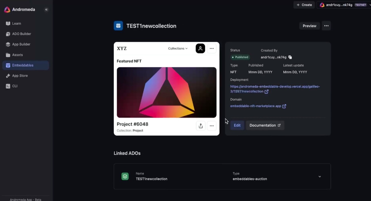In our [ADO Builder examples](https://docs.andromedaprotocol.io/guides/introduction/ado-builder), we have covered the basics of building an Andromeda Application from scratch. Now we will be taking a look into embeddables, our easy to use front-end interfaces that provide a face to your app.&#x20;